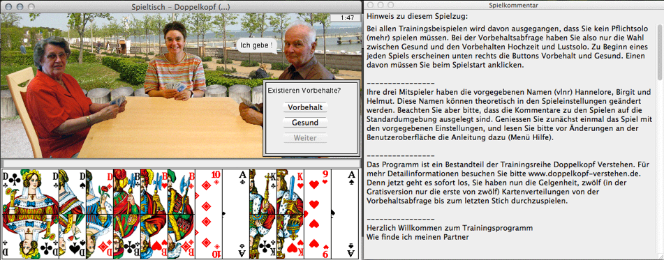 Hinweis: Mit diesem Trainingsprogramm können Sie nur trainieren, nicht spielen. Sind Sie an einem Doppelkopf-Spielprogramm interessiert, wählen Sie eines der anderen Produkte aus unserem Programm